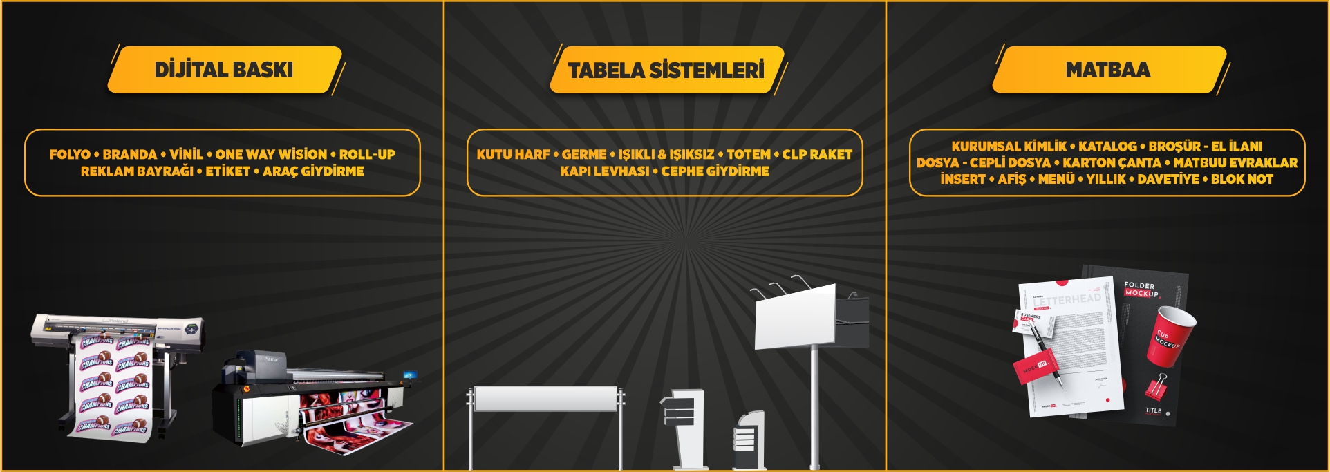 Tasarım, baskı ve uygulama aşamasında tüm ihtiyaçlarınız için buradayız.